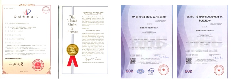 公司的品牌技术和产品,申请国家发明专利23项,国际发明专利2项(美国和加拿大各一项);其中国家发明专利授权10项,国际发明专利授权1项;同时获得企业标准23项。凭借先进的技术,公司先后获得了“最具潜力企业”、“山东省专利明星企业”等多项荣誉,同时多项技术通过立项鉴定,获得国家先进水平的评价。