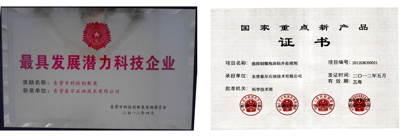 东营泰尔石油技术有限公司是一家集科研、化工品生产和为能源勘探开发提供高难度钻井液技术服务于一体的综合型高新技术公司。公司座落在石油大学科技园,拥有以钻井液技术研究室、承压堵漏研究室为主的研究开发中心,配套有先进的钻井液实验室,具有产业化的生产车间。公司技术实力雄厚,拥有一支高素质核心团队和技术服务队伍。以“不断进取、开拓创新”为指导方向,拥有配套完善的技术研究中心,有研究实验人员多名,有可满足科研需要的仪器装备。近年来,技术研究中心紧密结合公司技术发展的需要,研发了TRS钻井液技术、TRS新型堵漏技术、TRS可循环微泡沫钻井液技术等五大系列、30多项技术、50余种专利产品,同时公司也通过了ISO9001认证和HSEL095认证。